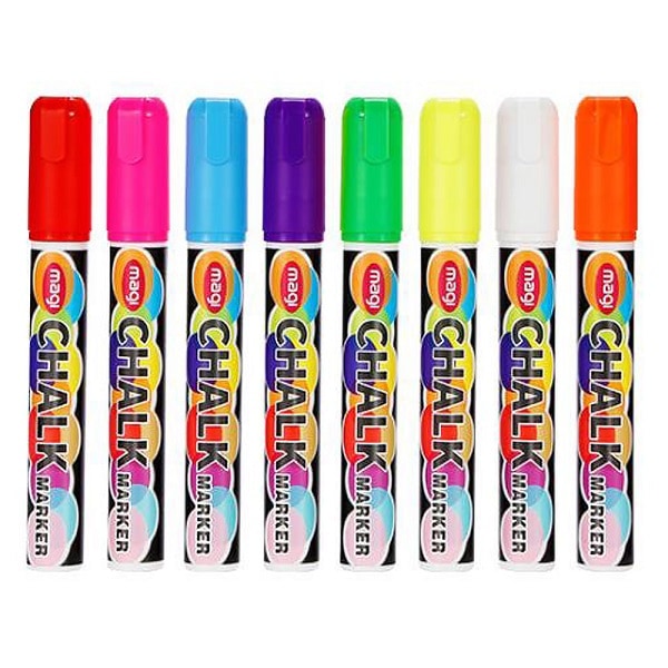 LED看板用蛍光マーカー 8色入り 15mm 蛍光ペン 角芯 水性ペン 液体蛍光 光る看板 メニューボード