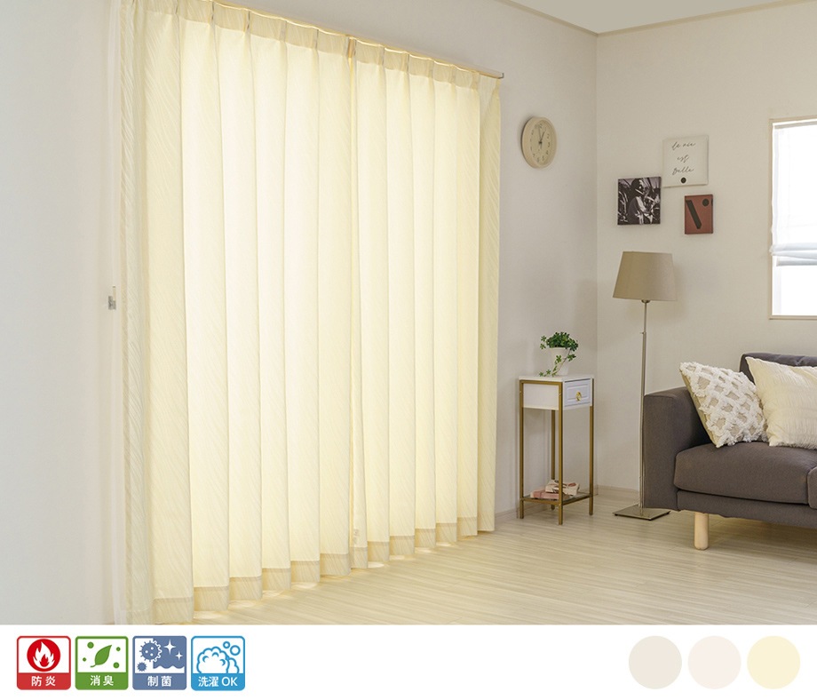 ふわりと柔らかい手触りを持つ無地の遮像レースカーテン「スフレ」アイボリー