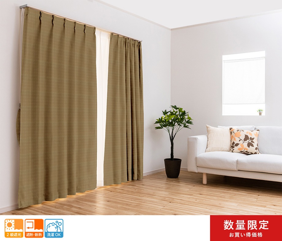 数量限定でお買い得価格の2級遮光カーテン「ノウル」(ブラウン)