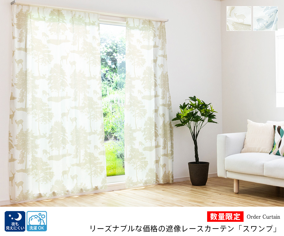数量限定でお買い得価格の遮像レースカーテン「スワンプ」(ベージュ)