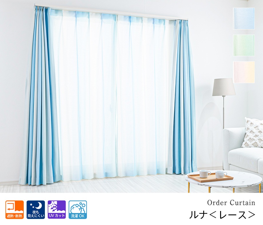淡いペールトーンのグラデーション遮像レースカーテン「ルナ レース」ブルー