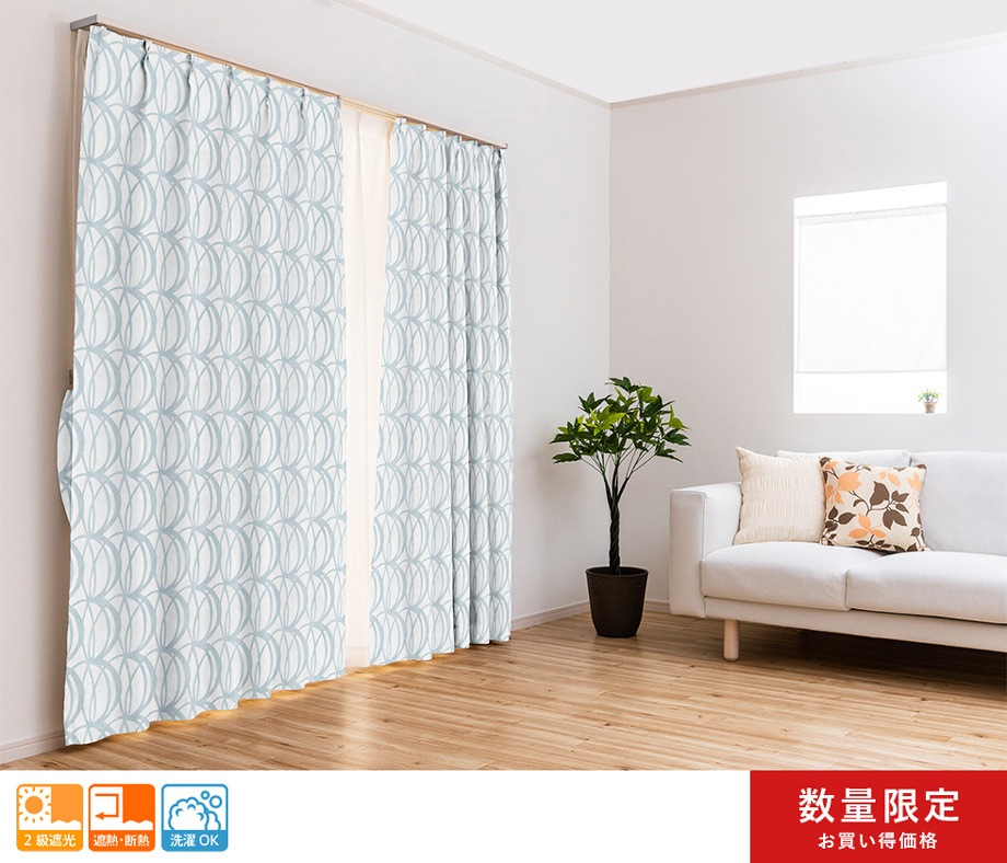 数量限定でお買い得価格の2級遮光カーテン「アオナミ」(ブルー)