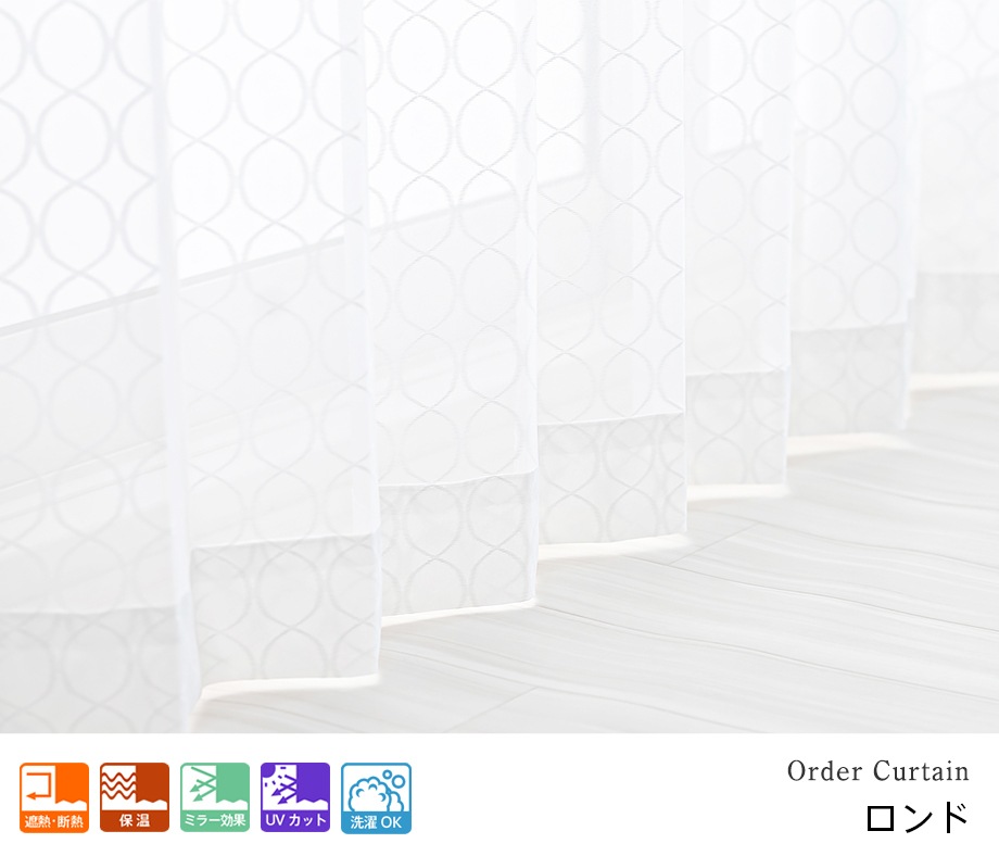 大きいドロップ柄のUVカットミラーレースカーテン「ロンド」ホワイト