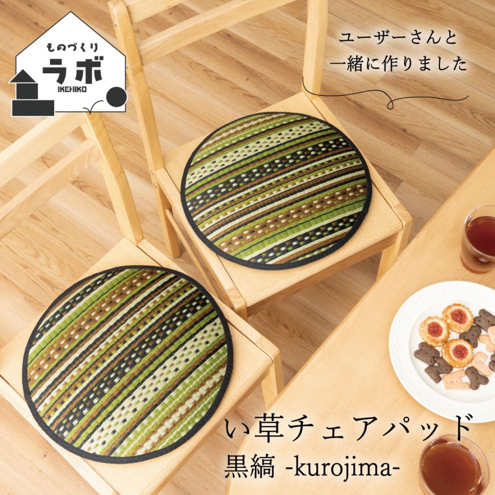 い草 チェアパッド 黒縞 クッション 座布団 国産 日本製 和モダン 男前 ナチュラル シート 約38cm丸