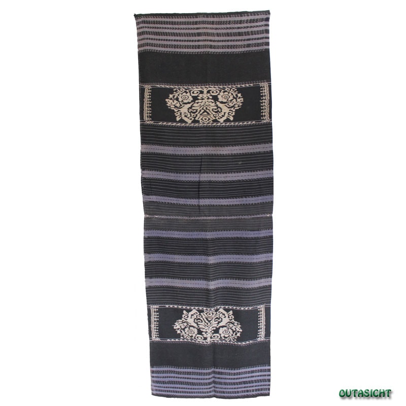 カレン族 綿手紡ぎ手織腰衣 浅紫部分かすり黒縞模様 アンティーク タイ TMR-69