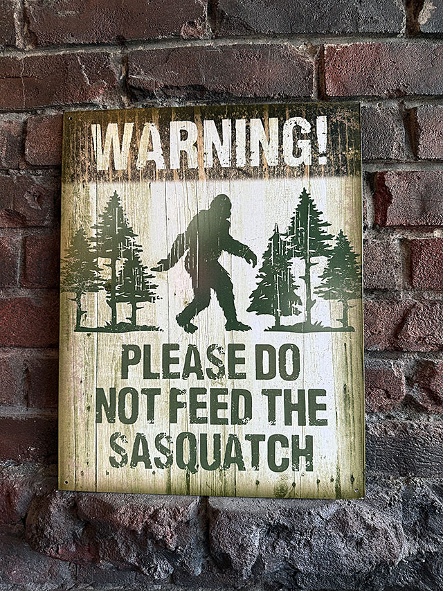 「警告! ビッグフットにエサをやらないでください」 ブリキ看板 サスカッチ 山男 雪男