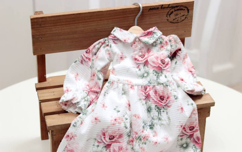 【着せ替え用】フリル襟の花柄プリントワンピース