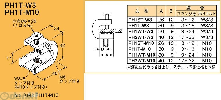 ネグロス電工 [PH1T-W3] 吊り金具 吊りボルト用支持金具 パイラック型【一般形鋼用】