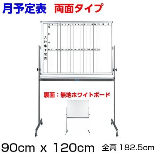 脚付き両面式ホワイトボード(片面縦書き月予定表/片面無地) / ボードサイズ:タテ90cm x ヨコ120cm、スタンド装...