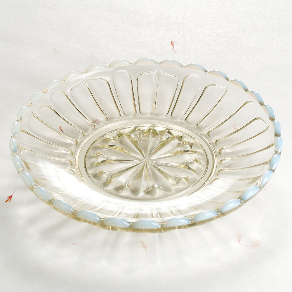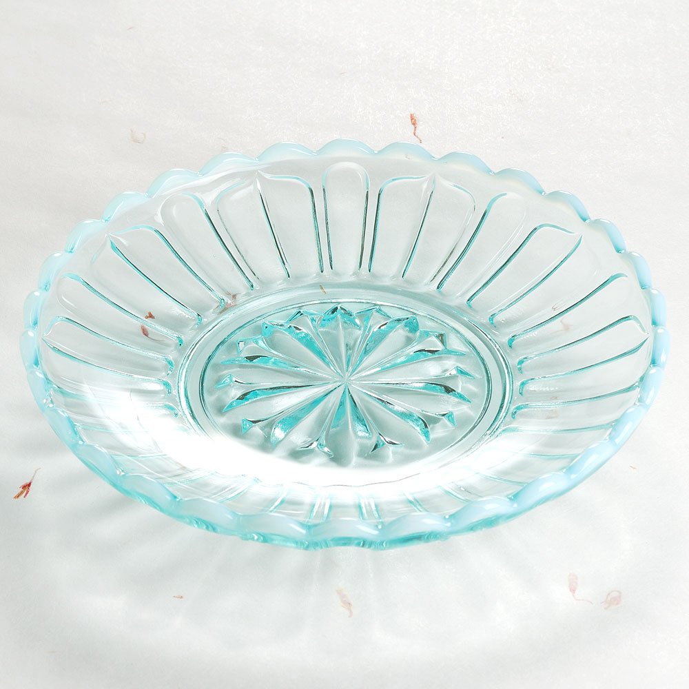 廣田硝子 雪の花 デザートトレー ブルー アンティークなスタイルの厚手ガラス食器 昔懐かしいレトロな喫茶店の雰囲気 日本製