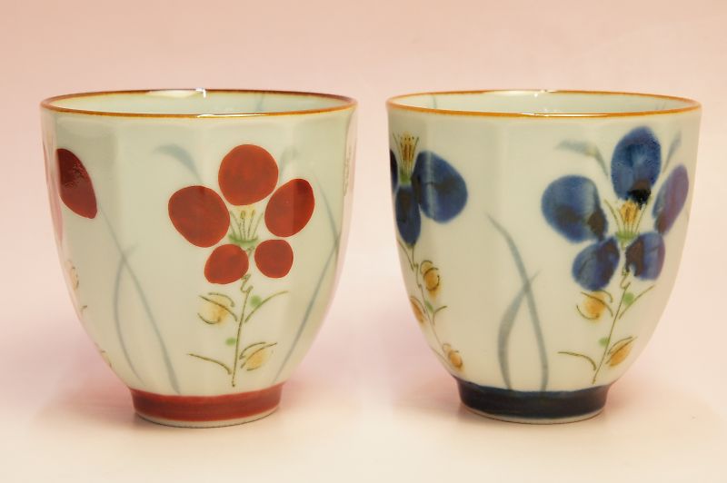 砥部焼 梅山窯 面取り湯呑み(カラー)