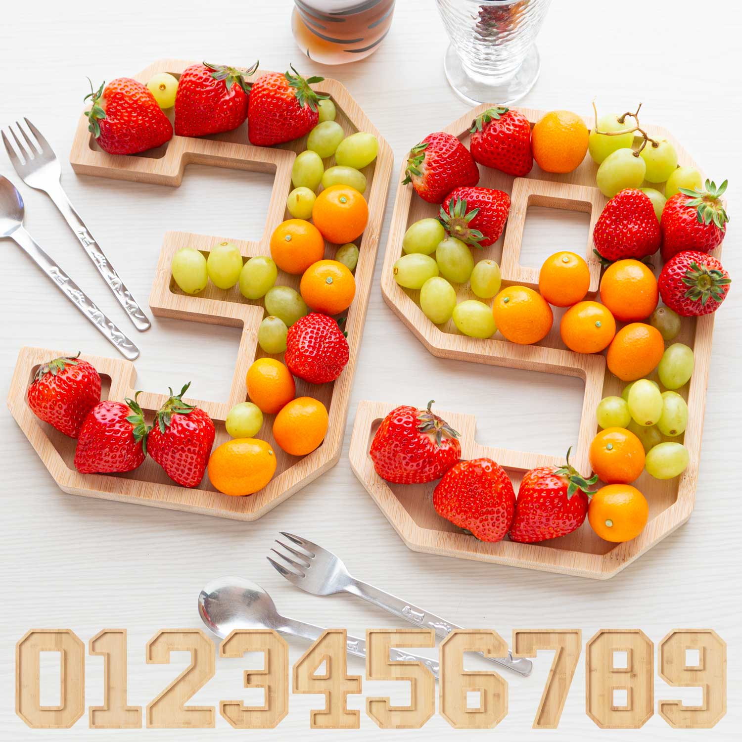 数字型 バンブープレート 竹製サービングプレート 誕生日・記念日パーティーに フルーツ・スイーツ盛り付け用 シャルキュトリーボード