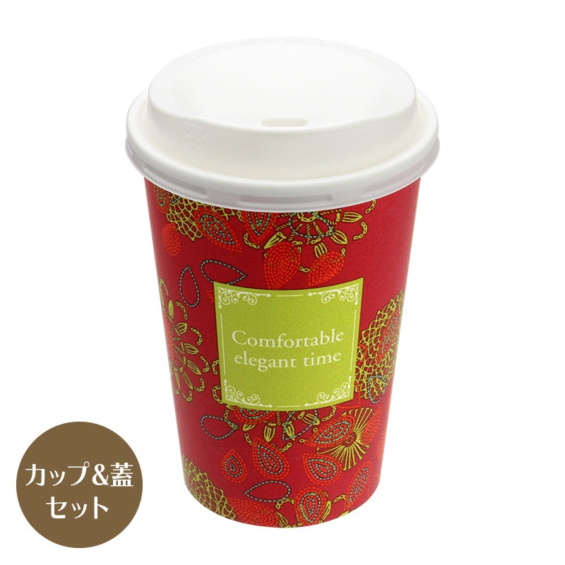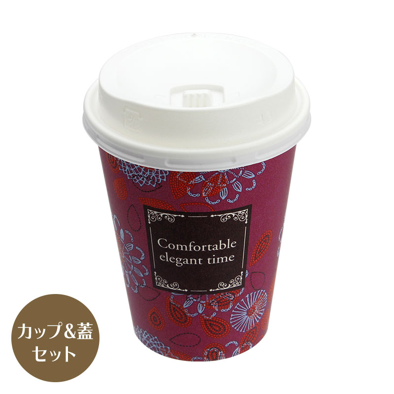 紙コップ蓋付 厚紙カップ エレガントタイム SMT-280 リフトアップリッド 白 100個セット