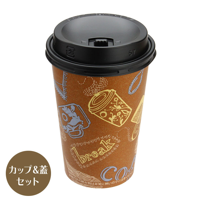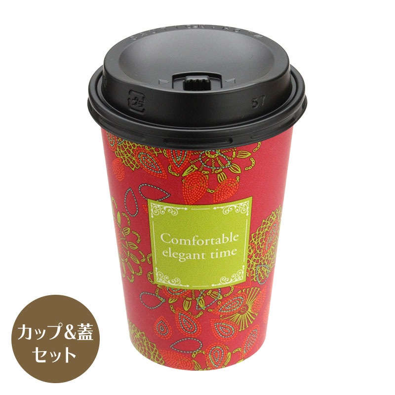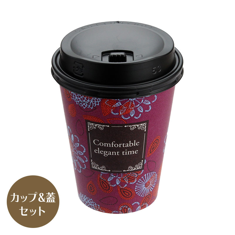 紙コップ蓋付 12オンス エレガントタイム SMT-400 リフトアップリッド 黒 100個セット