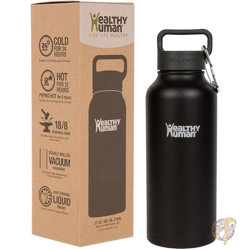 ヘルシーヒューマン ステンレススチール ウォーターボトル 二重壁真空断熱ウォーターサーモス 946ml 32oz-pure-bla...