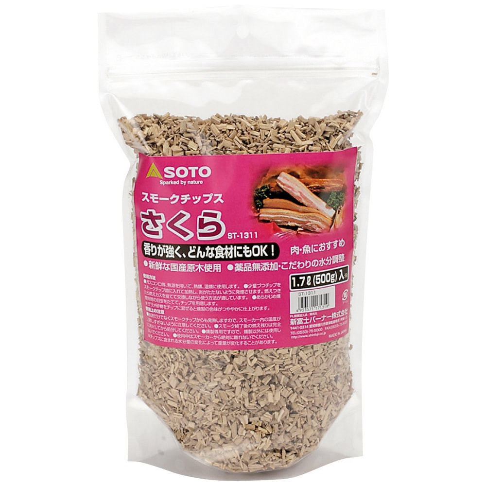 新富士バーナー SOTO(ソト) 燻煙材(燻製チップ) スモークチップス 老舗さくら ST-1311 500g【取り寄せ商品・即納...