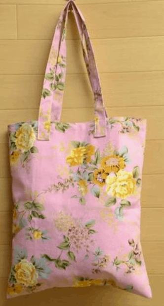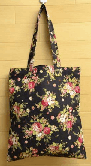 ローズ柄トートバッグ 35x37cm グリーンピンク