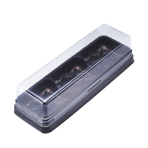 【和菓子容器】PS 和生3ケ用トレー 本体黒 本体・蓋セット 2,000個