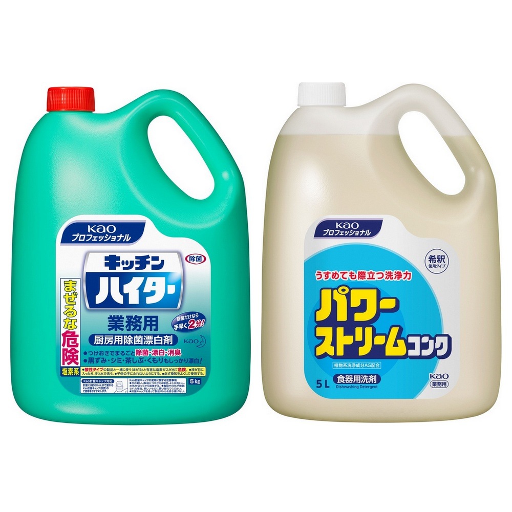 花王 塩素系漂白剤 キッチンハイター 5kg+食器用洗剤 パワーストリームコンク 5Lセット