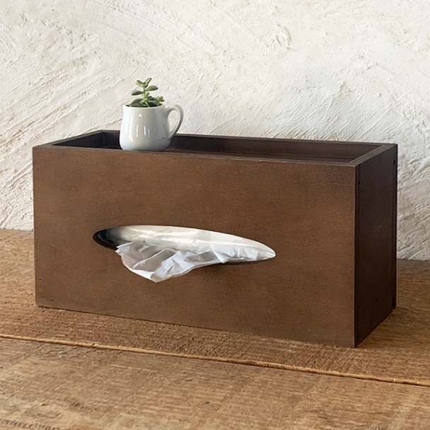 小物置き ティッシュケース ダークブラウン