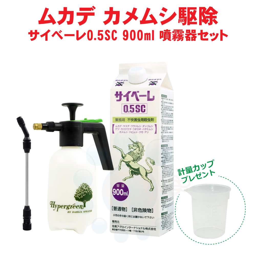 ムカデ 駆除 ヤスデ駆除 サイベーレ0.5SC 900ml 噴霧器セット 計量カッププレゼント 【送料無料】 液体 噴霧 殺虫剤