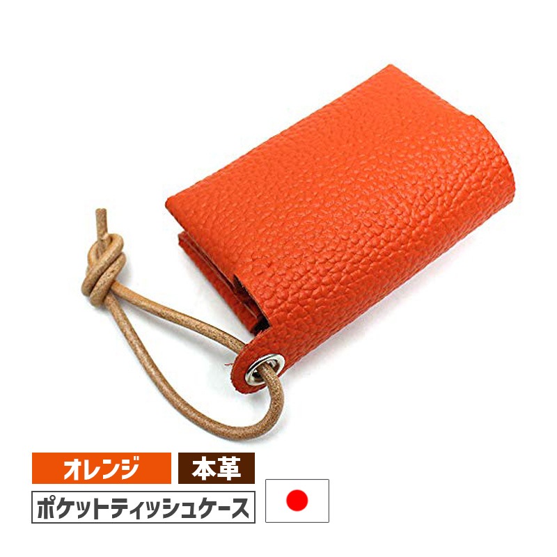 [ODMDG16-OR-SV] ポケットティッシュケース DG-16 本革 日本製 オレンジ/金具シルバー★