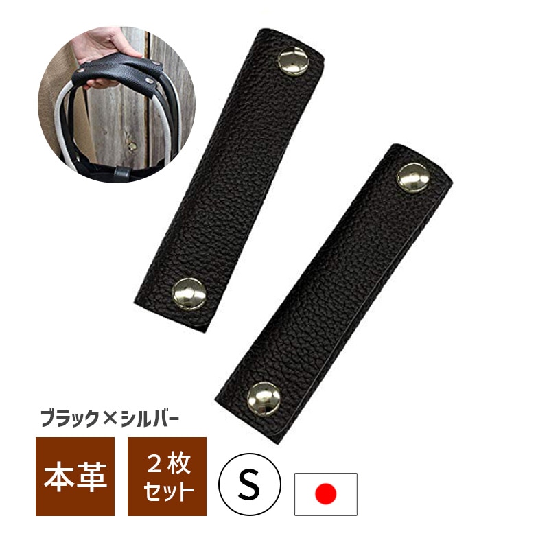 [HDL04-S-SV-BK] ハンドルカバー 本革 2枚セット Sサイズ 金具シルバー ブラック