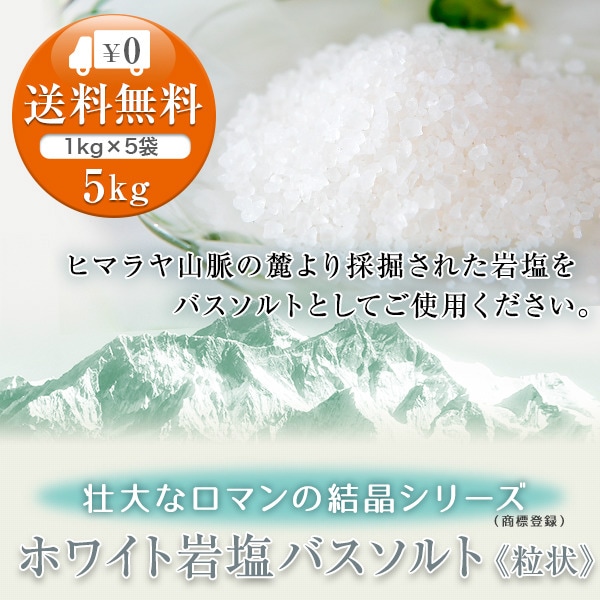 ホワイト岩塩バスソルト(粒状) 5kg(1kg×5袋)<浴用化粧品>