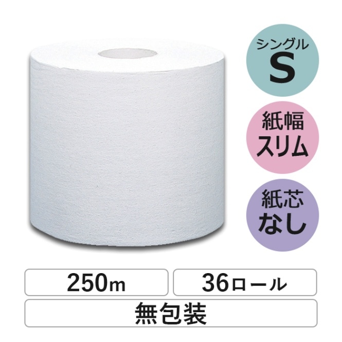 業務用 トイレットペーパー シングル 250m 36ロール イッポ 芯なし スリム幅(107mm) 無包装 ミシン目なし 無香料 ...