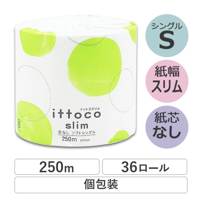 業務用 トイレットペーパー シングル 250m 36ロール イットコ 芯なし スリム幅(107mm) ミシン目なし 無香料 102...