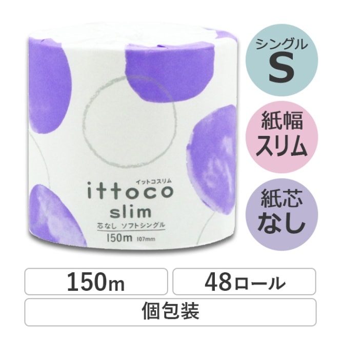 業務用 トイレットペーパー シングル 150m 48ロール イットコ 芯なし スリム幅(107mm) 1ロール ミシン目なし 無香...