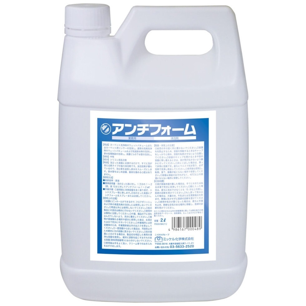 【全国送料無料】ミッケル化学 消泡剤 アンチフォーム 2L×8本入【メーカー直送・代引き不可・時間指定不可】