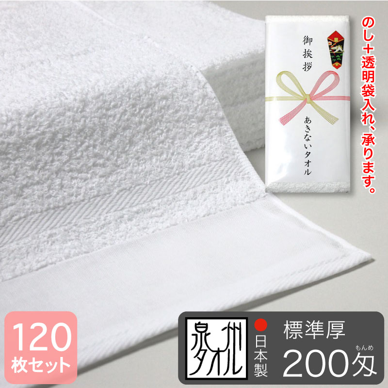 平地付き 白フェイスタオル 200匁 標準厚 粗品タオル 泉州タオル 日本製・120枚セット