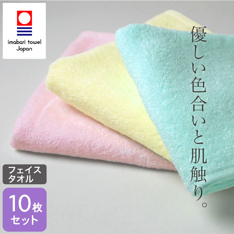 【今治タオル】 カラーフェイスタオル 330匁 約34×90cm・同色10枚セット