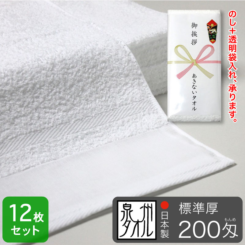 平地付き 白フェイスタオル 200匁 標準厚 粗品タオル 泉州タオル 日本製・12枚セット