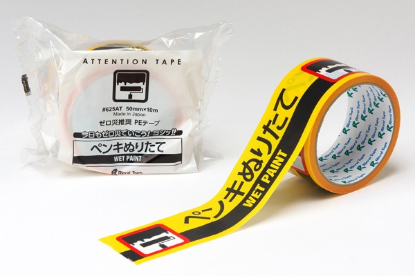 リンレイテープ 注意喚起テープ 50mm×10m ペンキぬりたて(1セット30巻入)