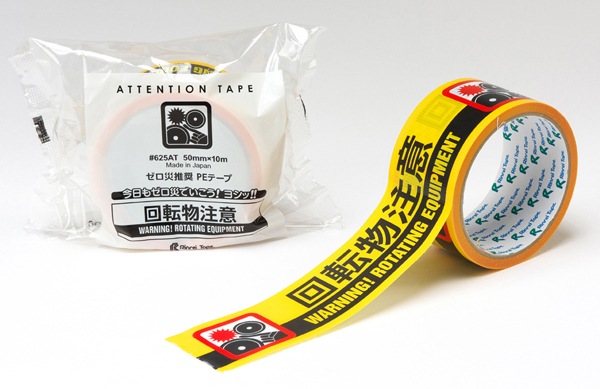 リンレイテープ 注意喚起テープ 50mm×10m 回転物注意(1セット30巻入)