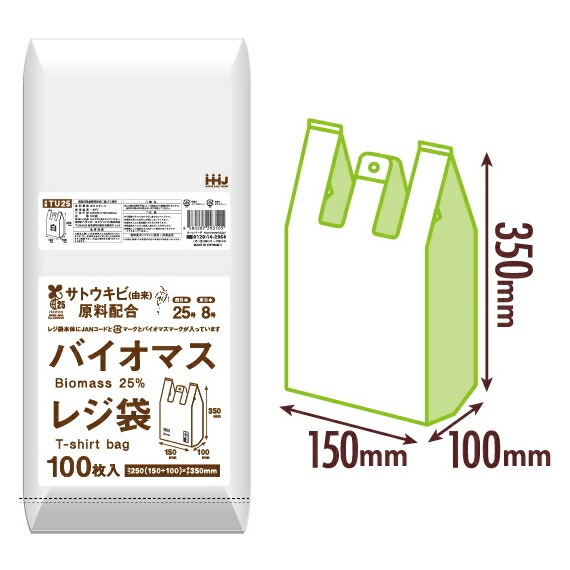 【個人宅配送可】バイオマスレジ袋 白 TU25(西日本25号、東日本8号) 100枚×80冊(8000枚)【取り寄せ商品・即納不可...