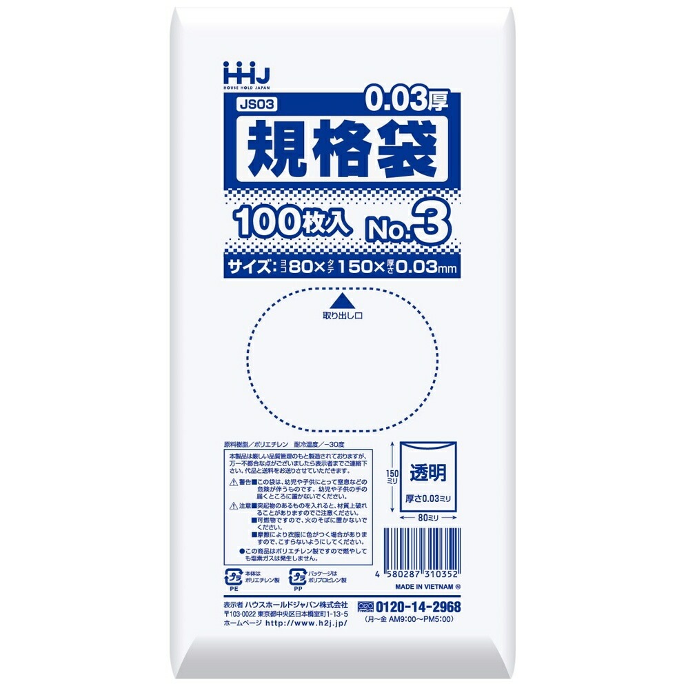 【個人宅配送可】規格袋 No.3 0.03×80×150mm 100枚×200冊 JS03【取り寄せ商品・即納不可・代引き不可・返...