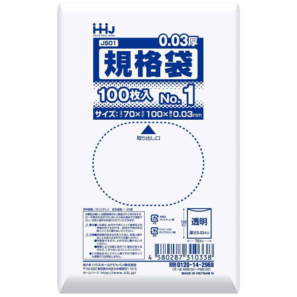 【個人宅配送可】規格袋 No.1 0.03×70×100mm 100枚×200冊 JS01【取り寄せ商品・即納不可・代引き不可・返...