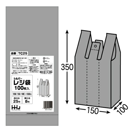 【法人様限定】レジ袋 シルバー TC25(西日本25号、東日本8号) 100枚×40冊(4000枚) 3ケースロット【メーカー直送...