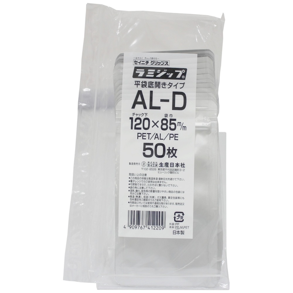 ラミジップ AL-D 底開き平袋タイプ アルミ 120×85mm 50枚×5袋【専用倉庫直送】