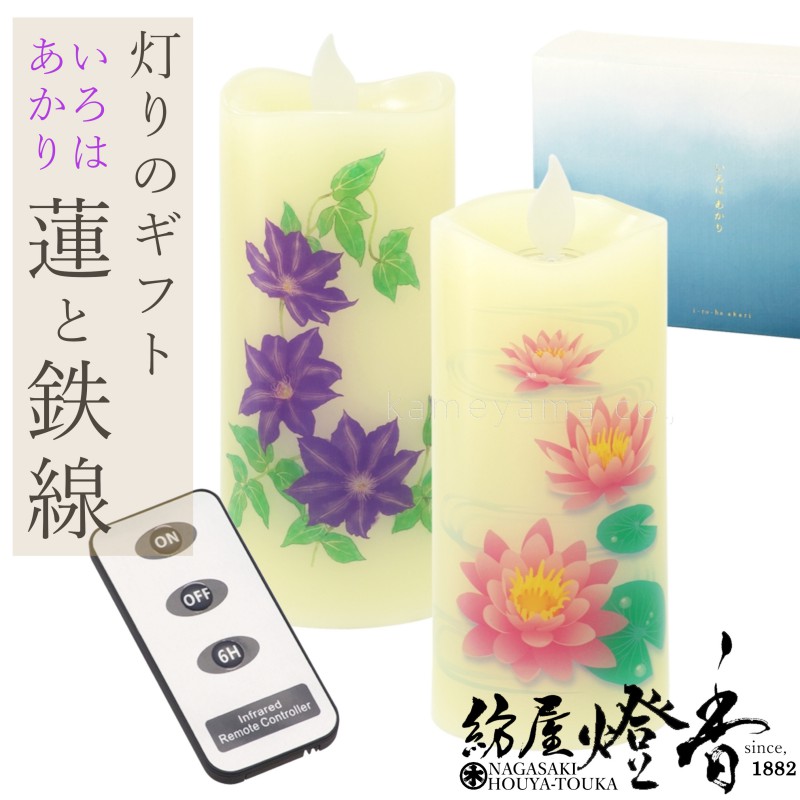 贈答/ギフト『進物いろはあかりS【供華灯・蓮/鉄線-irohaakari-】LEDローソクセット紙箱入[揺らぐ炎/左右対称両面図柄...