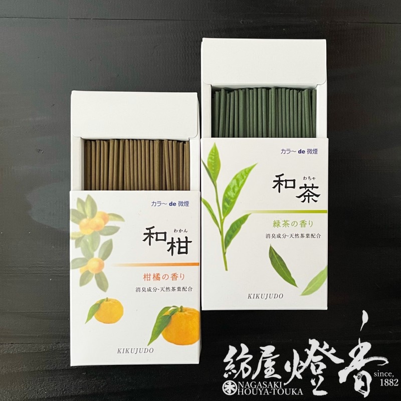 ミニ線香『天然茶葉配合【和柑(わかん)-WAKAN-】超ミニ寸バラ詰[微煙/消臭成分配合]』菊寿堂