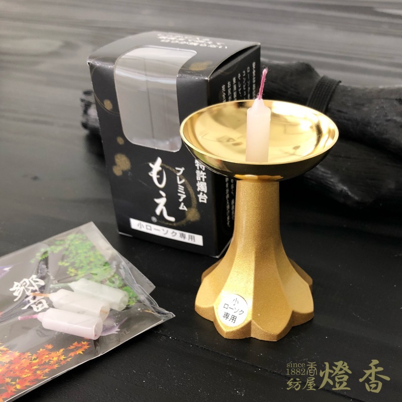 蝋燭立/仏具『ロウが残らない【プレミアムもえ・ゴールド-MOE-】小ローソク専用特許燭台』東海製蝋