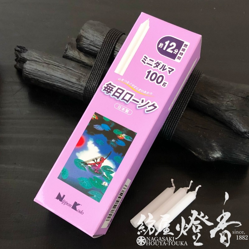 普通蝋燭『毎日ローソク【ミニダルマ/100g/日本製】白芯・約73本入[燃焼12分]』日本香堂