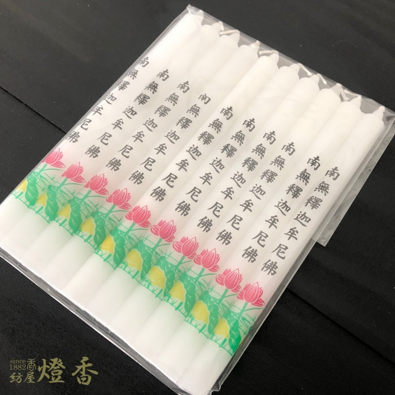 【アウトレット品】花/文字蝋燭『宗派別転写ローソク大ロー3号【南無釈迦牟尼佛】』燃焼100分
