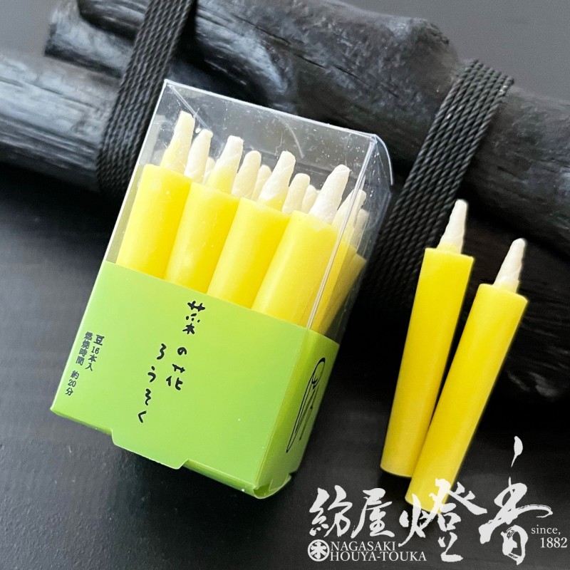 和蝋燭『菜の花ろうそく【豆/棒型/16本入】プラ箱[燃焼20分]』高澤ろうそく