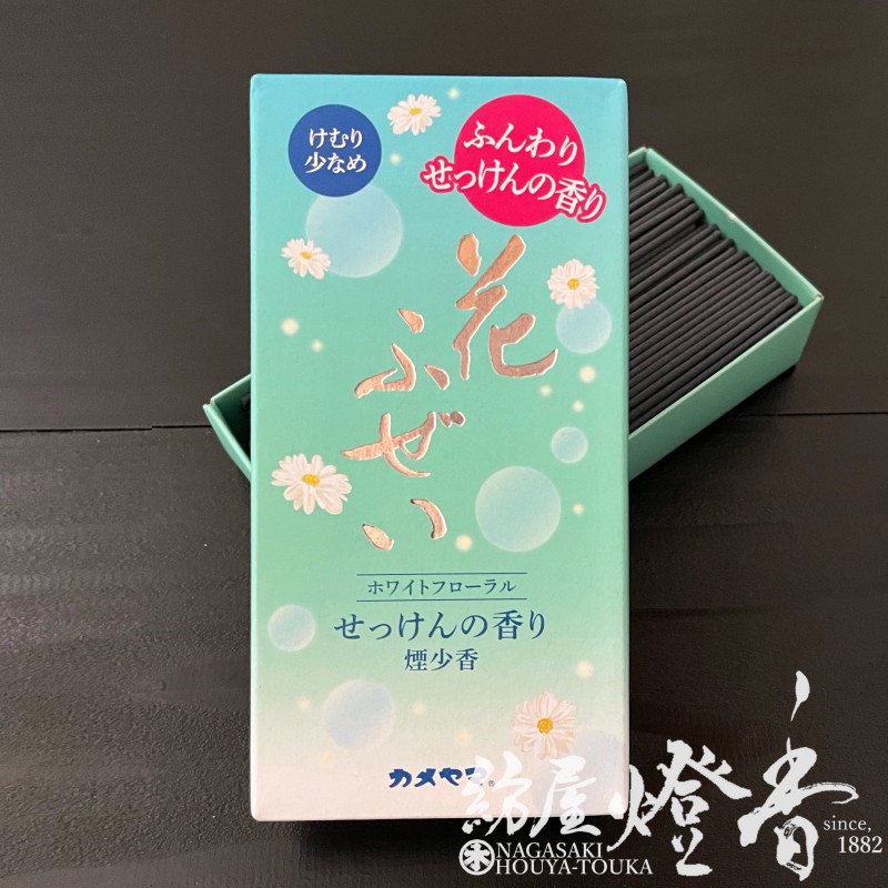 お線香『ホワイトフローラル【花ふぜい・せっけんの香り-HanaFuzei・Sekken-】短寸バラ詰[少煙]』カメヤマ