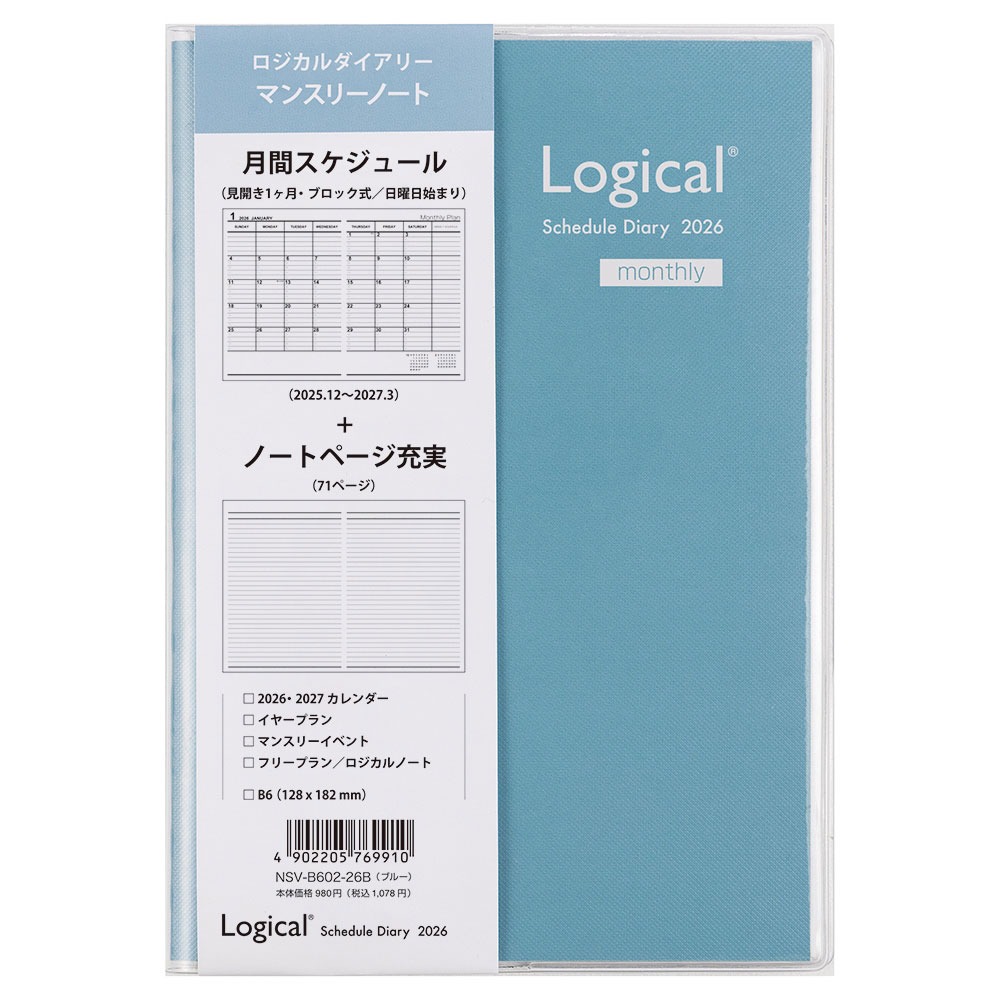 【未使用】ナカバヤシ 手帳 2026 ロジカルダイアリー カバータイプB6ブルーNSV-B602-26B●メール便●代引き不可